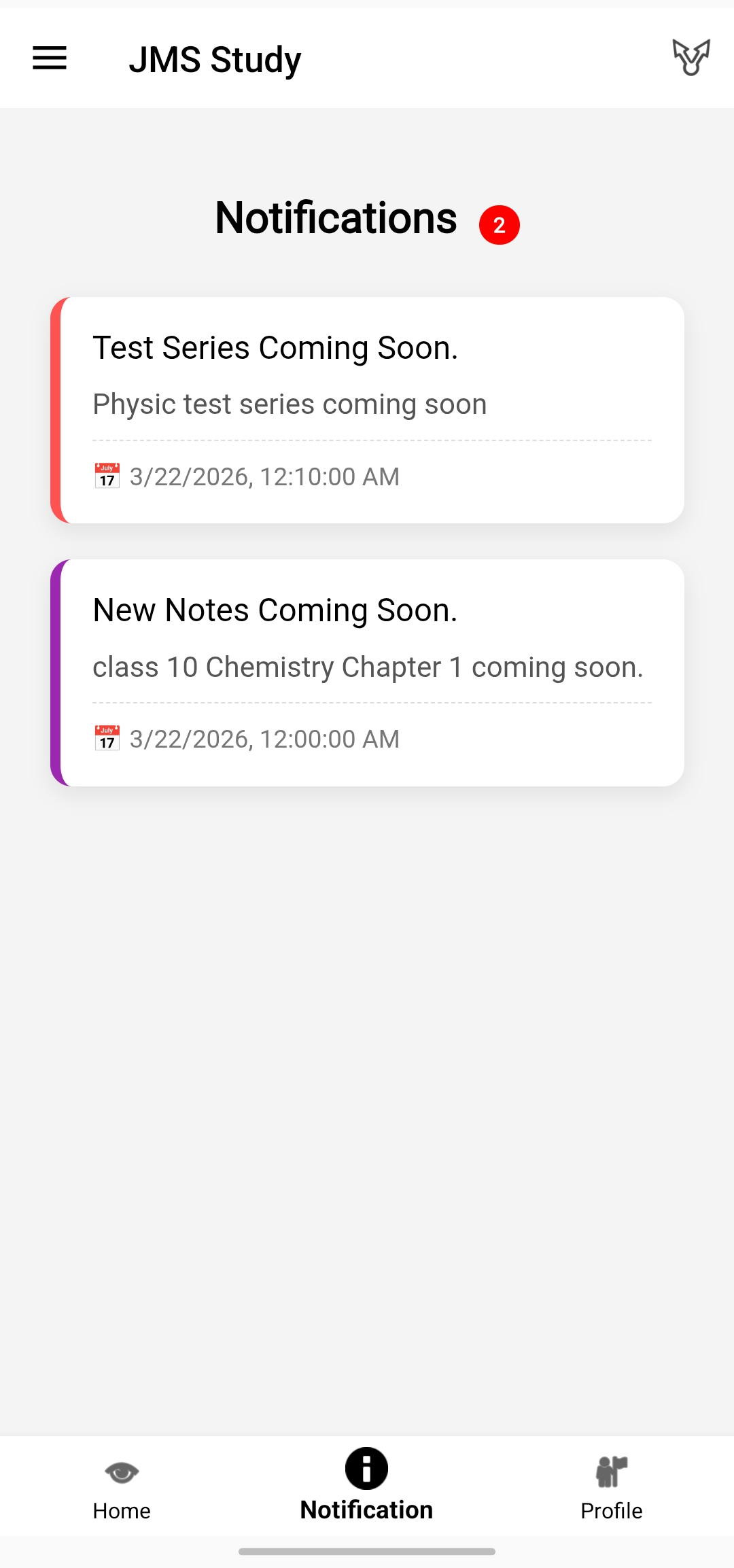 Sabhi notes aur study material JMS STUDY APP ke through available honge.