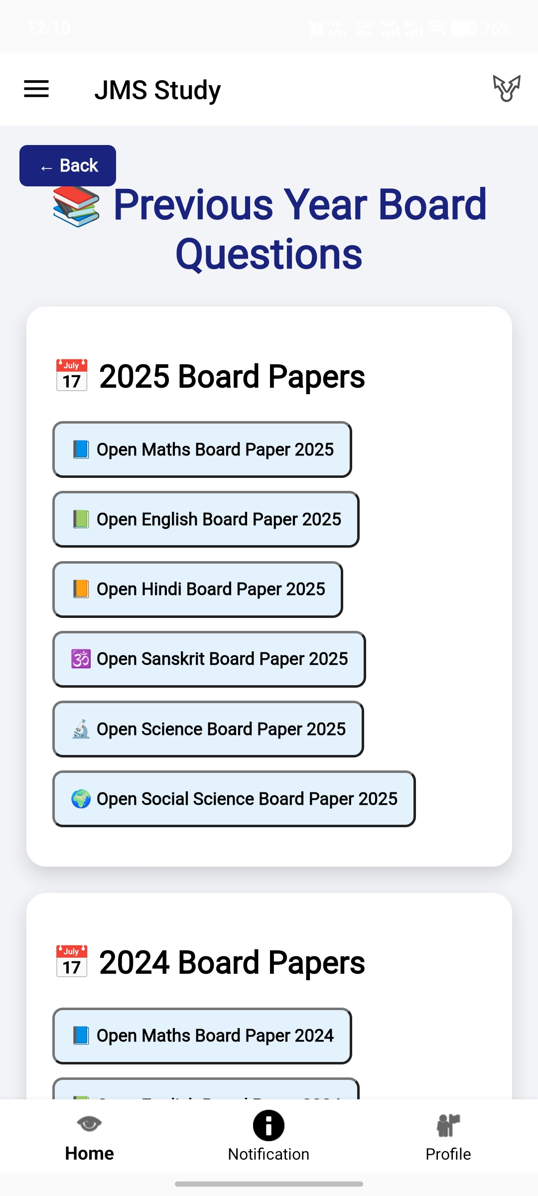 Class 9–10 students ke liye ek powerful study app jisme chapter-wise notes, important questions, previous year papers aur test series milta hai.