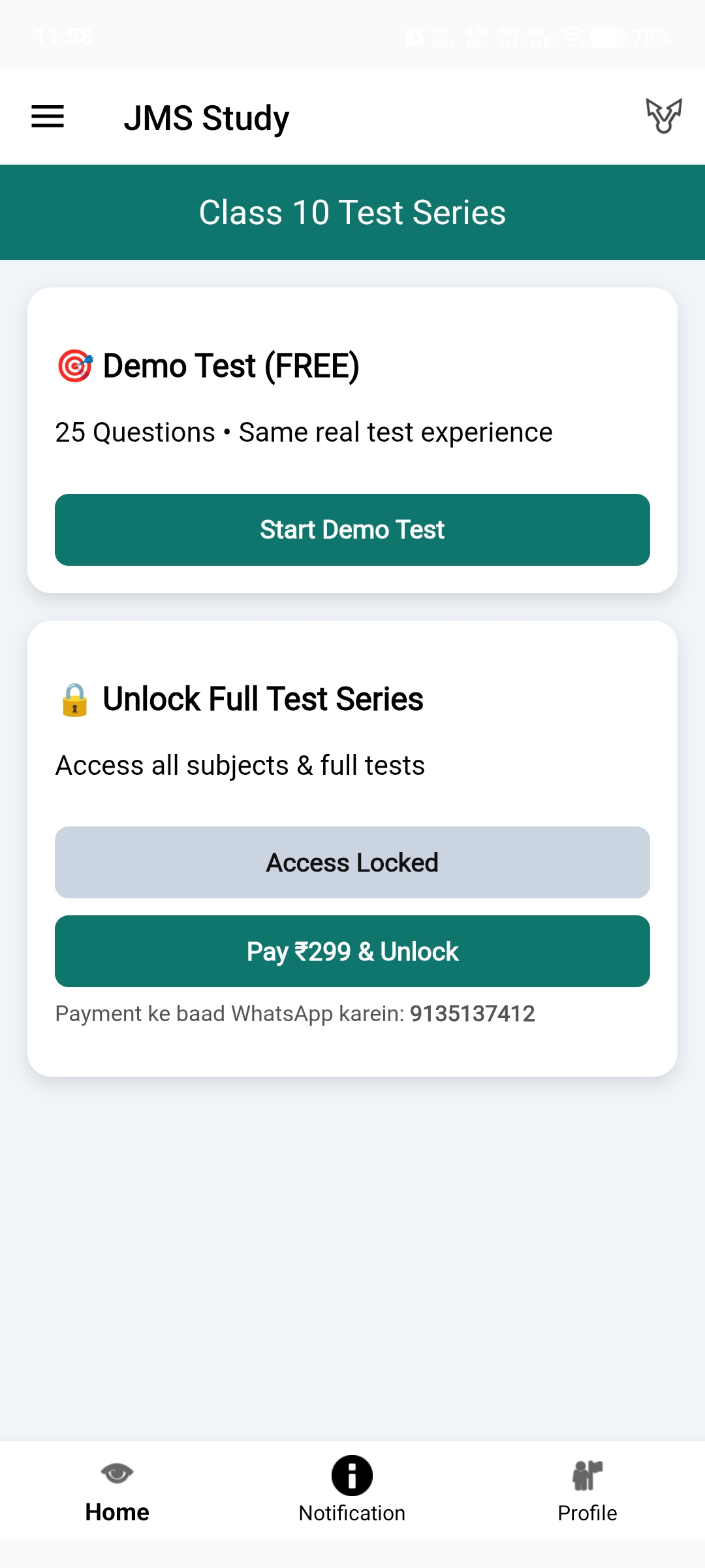 Enroll karne ke liye JMS STUDY APP me diye gaye number par WhatsApp ya call kare.